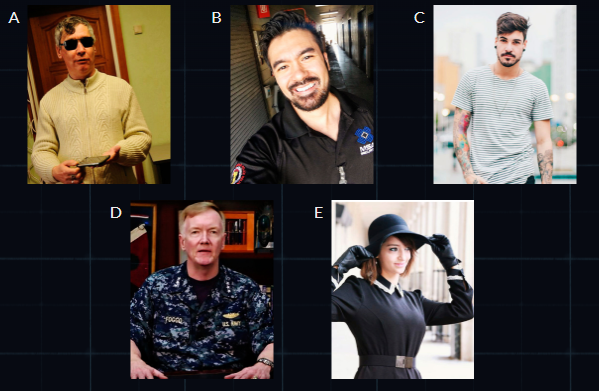 Вероятнее всего, собака служебная, в связи с этим мы отсекаем слепого мужчину — «A» и гражданских парня и девушку — «C» и «E». Остается военный с нашивкой военно-морского флота США и охранник MSA security – под буквами «D» и «B» соответственно. Морфлот маловероятен, так как собак в море особо не используют. Остается секьюрити «B», который вполне может быть связан с обеспечением безопасности подобного плана, плюс если бы вы проверили в поисковике MSA security, то с легкостью бы обнаружили чем занимается эта компания. А занимается она как раз проверкой грузов с помощью четвероногих помощников. Верный ответ – «В».